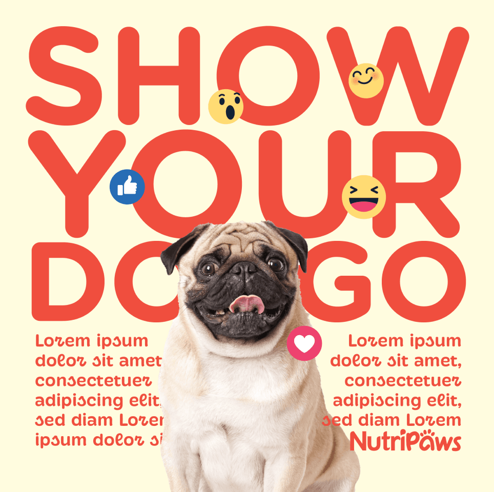 An initial key visuals for Nutripaws, an upcoming pet food brand in the Philippines.
